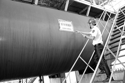 近日,河北沧州市质监局组织执法人员,对辖区禽类加工厂、冷库、生产液氨的化肥厂等企业的压力容器、压力管道、锅炉等特种设备进行拉网式检查。图为检查时的情景。